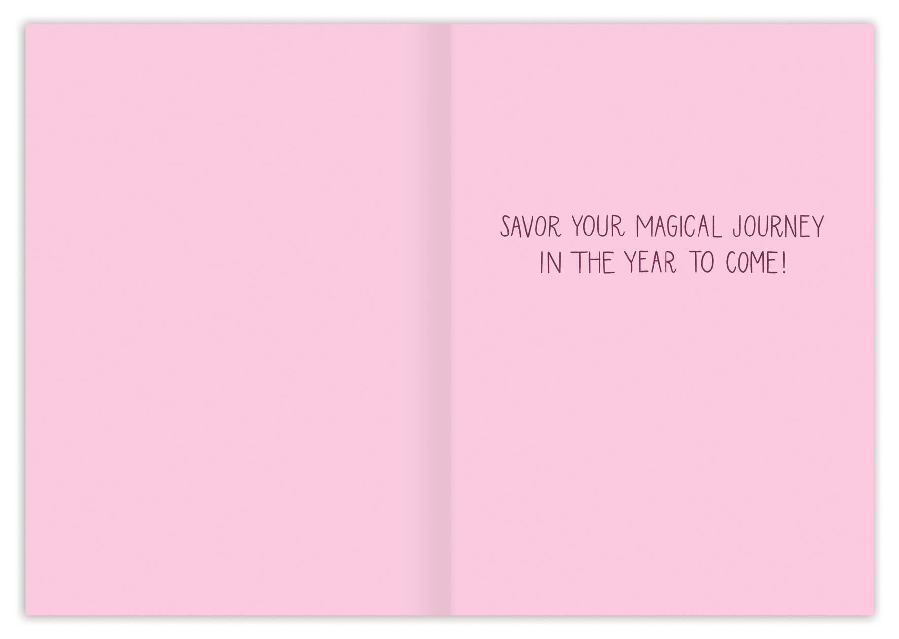 Inside, the message “Savor your magical journey in the year to come!” adds a touch of inspiration to your heartfelt wishes.