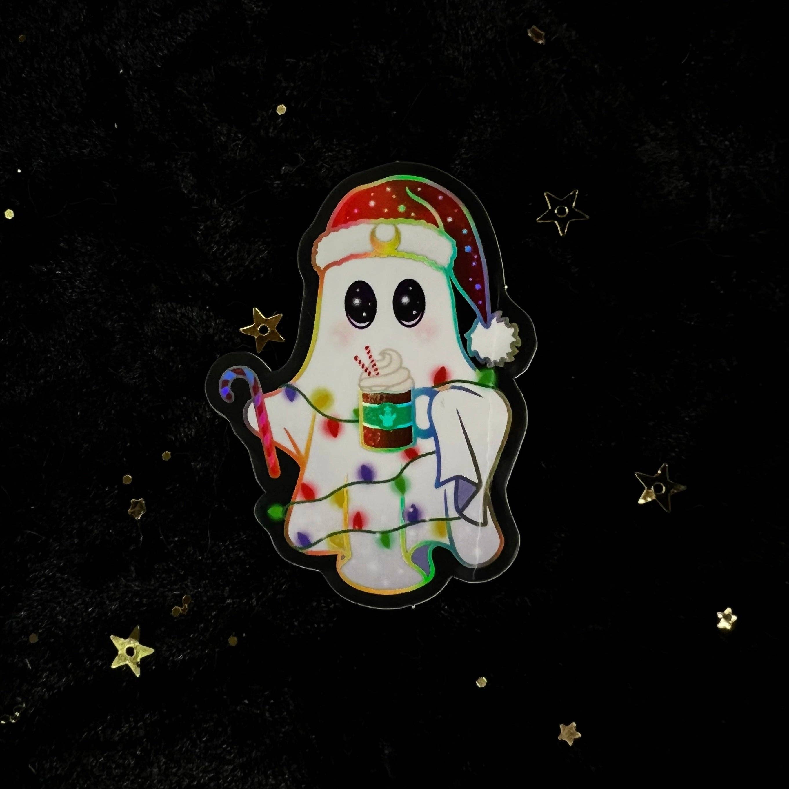 This little Ghostie is haunting the holidays with pure peppermint joy! Wrapped in twinkling Christmas lights, sipping on a peppermint latte, and rocking a Moonstruck Santa hat, Ghostie is here to bring merry mischief to your water bottle, laptop, or wherever you need a dash of festive enchantment. It’s the perfect mashup of cozy holiday magic and year-round ghostly charm.