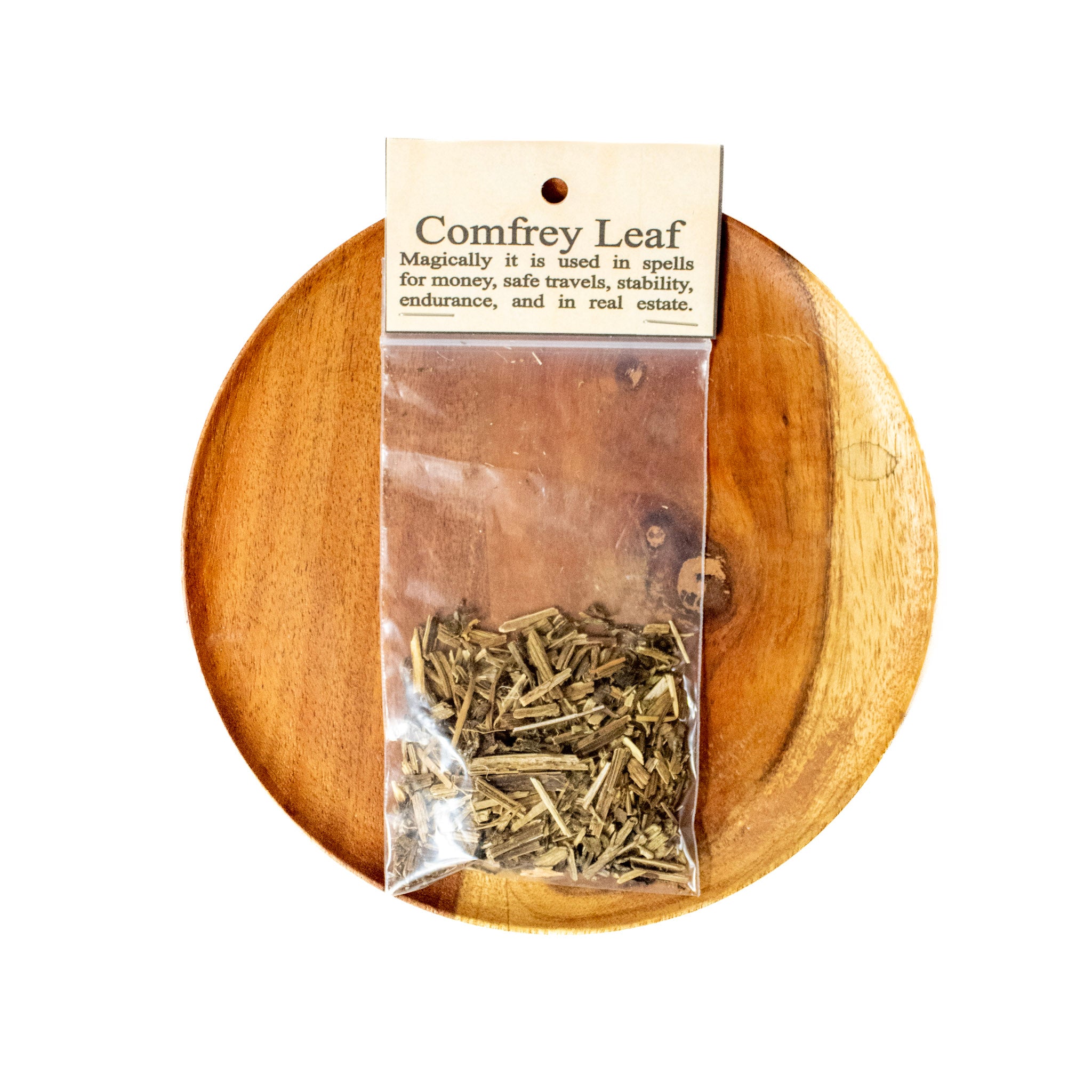 Comfrey Leaf is deeply grounding and is often used in spells for stability, protection, and safe return. Tuck it into luggage or cars for travel safety, or add to rituals for home and financial security. It’s also used to bind intentions and “seal” the energy of a working.