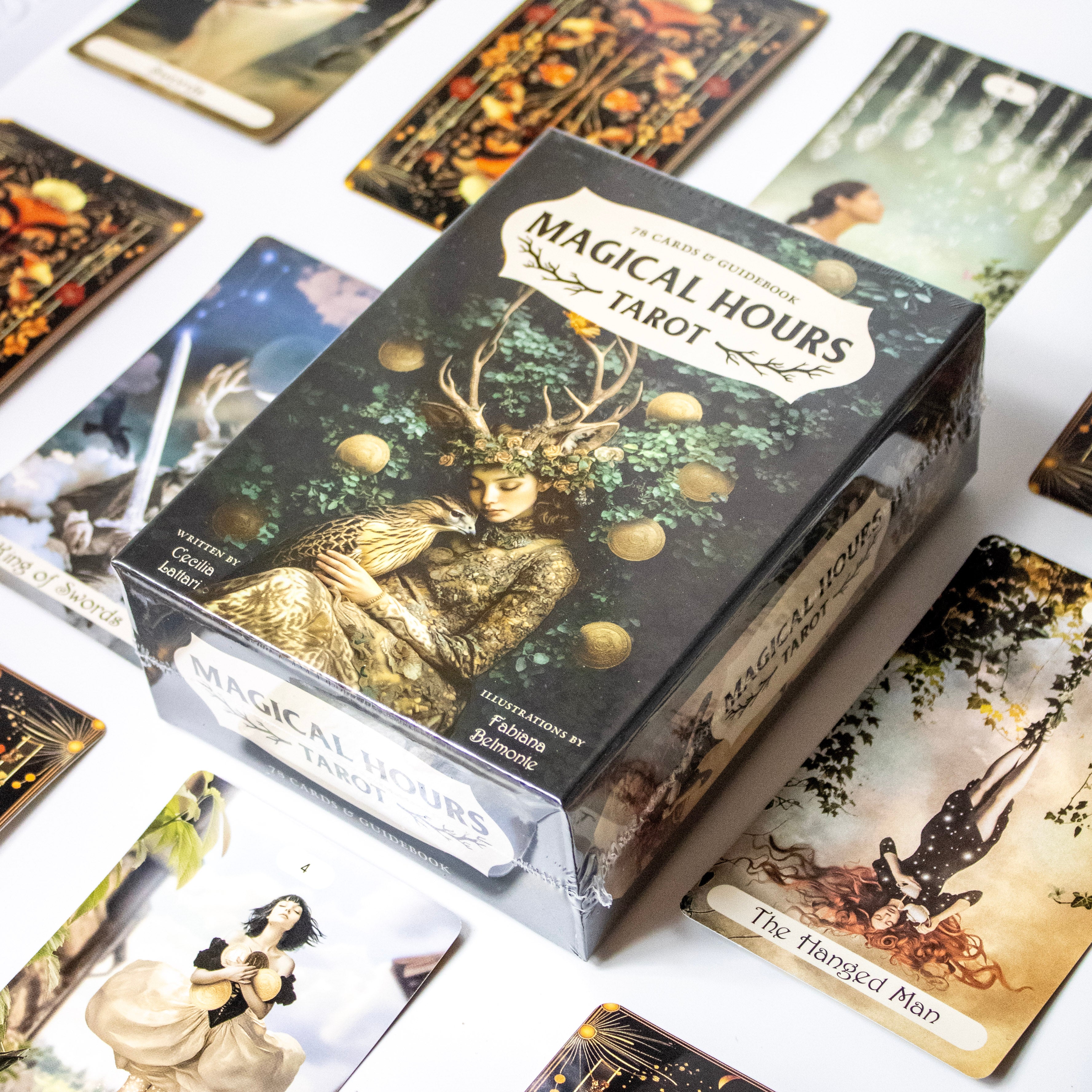 • Deluxe Packaging: Tarot deck is protected in tuckbox, cradled inside luxurious magnetic hinged outer box with spot gloss accents