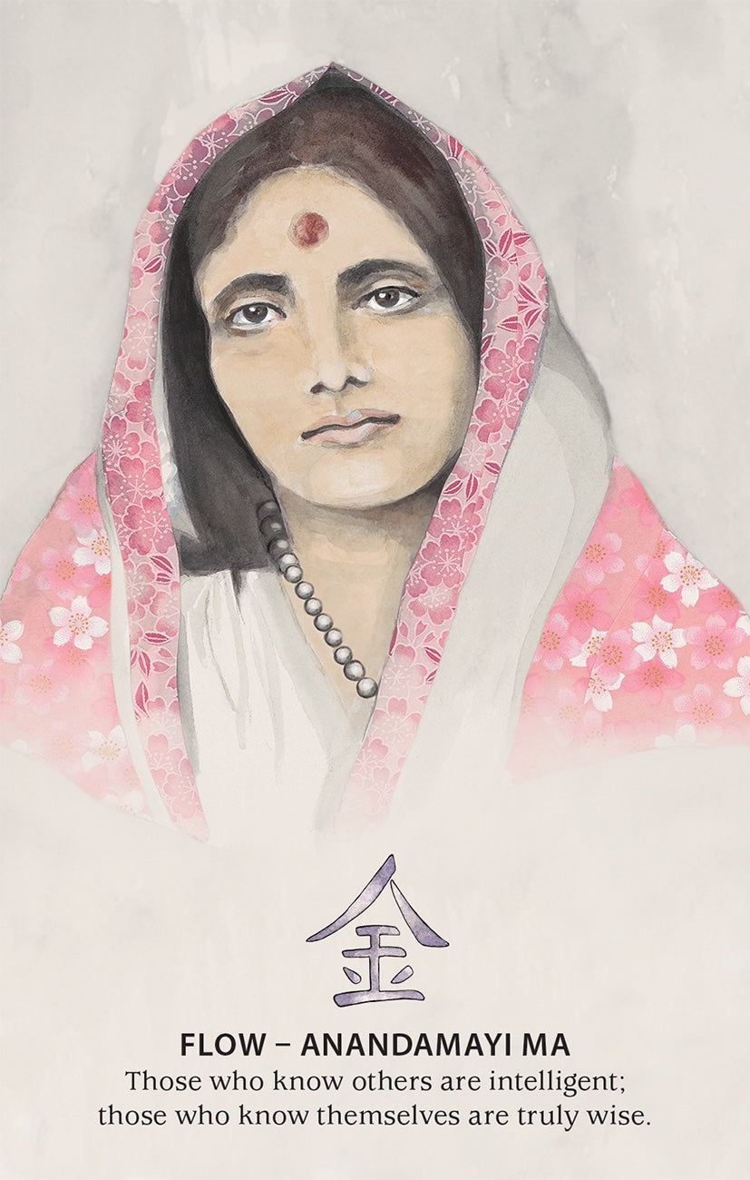 Each card offers reflective insight drawn from the teachings of revered spiritual sages, including Thich Nhat Hanh, Ram Dass, Ramana Maharshi, and Anandamayi Ma. Their words are woven into simple, practical messages that help ground ancient wisdom into everyday moments. Organized around the five elements, the deck provides a balanced framework for cultivating mindfulness, presence, and inner peace.