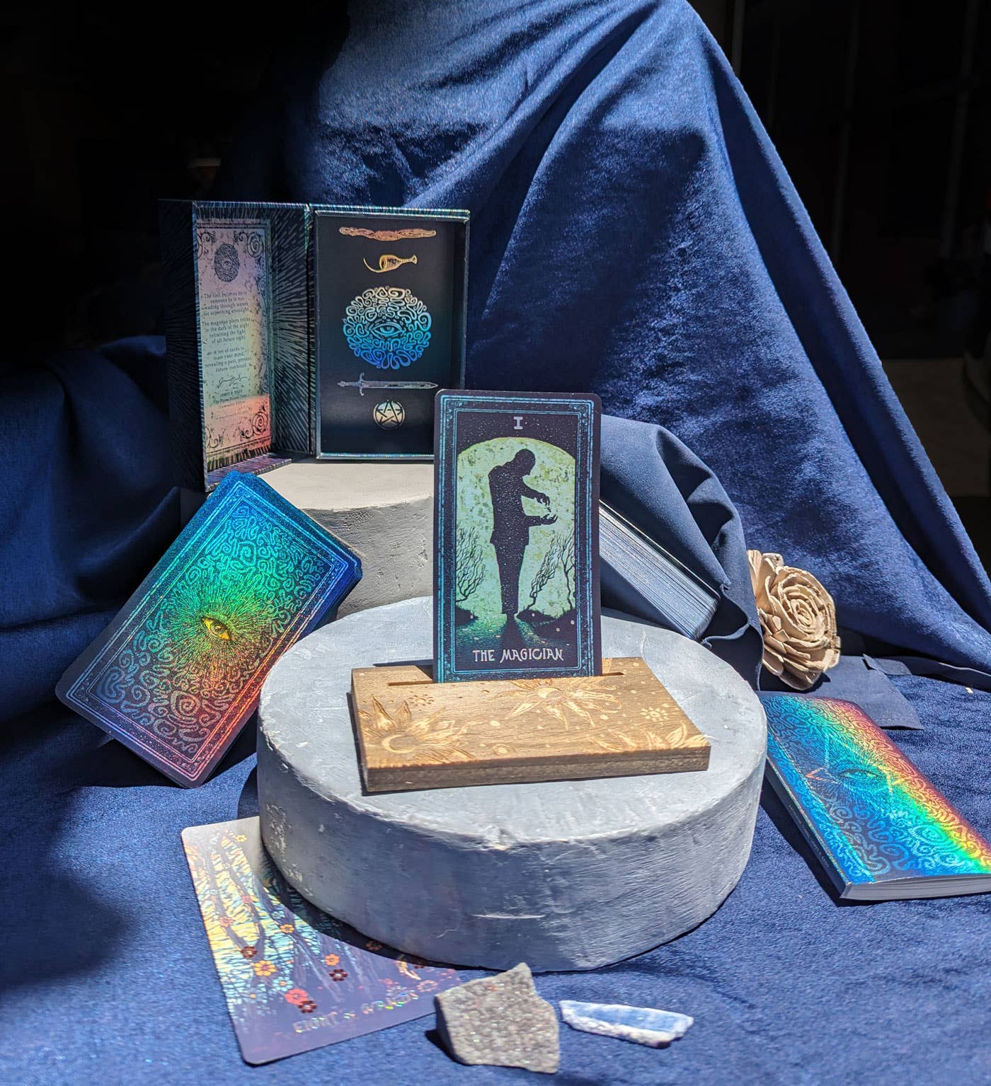 Each card is richly layered with foil, color, and prismatic detail, offering a visually immersive experience that feels expansive, modern, and symbolic. The imagery invites intuitive reading while maintaining a clear narrative flow, making it well suited for both experienced readers and collectors who value artistry and craftsmanship.