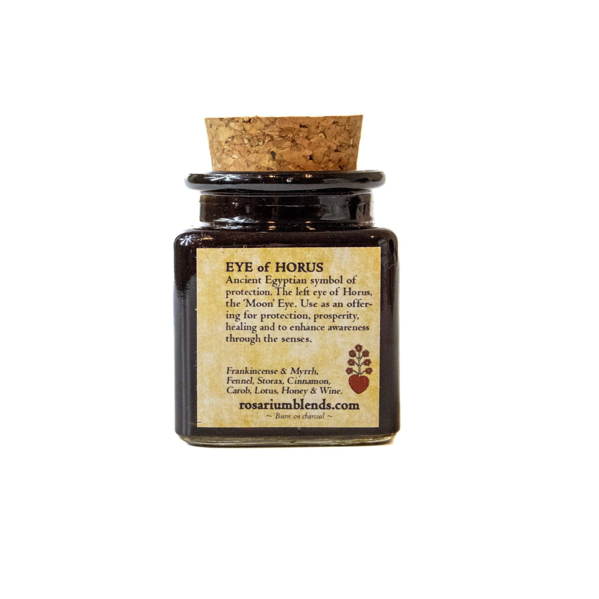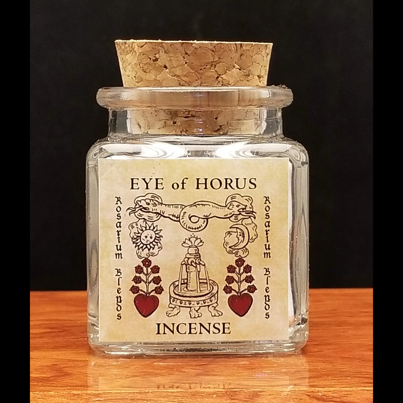 Packaging: Packaged in a clear apothecary glass jar with a cork lid. Approx. 2″ tall, holding ½–¾ ounce of loose incense.